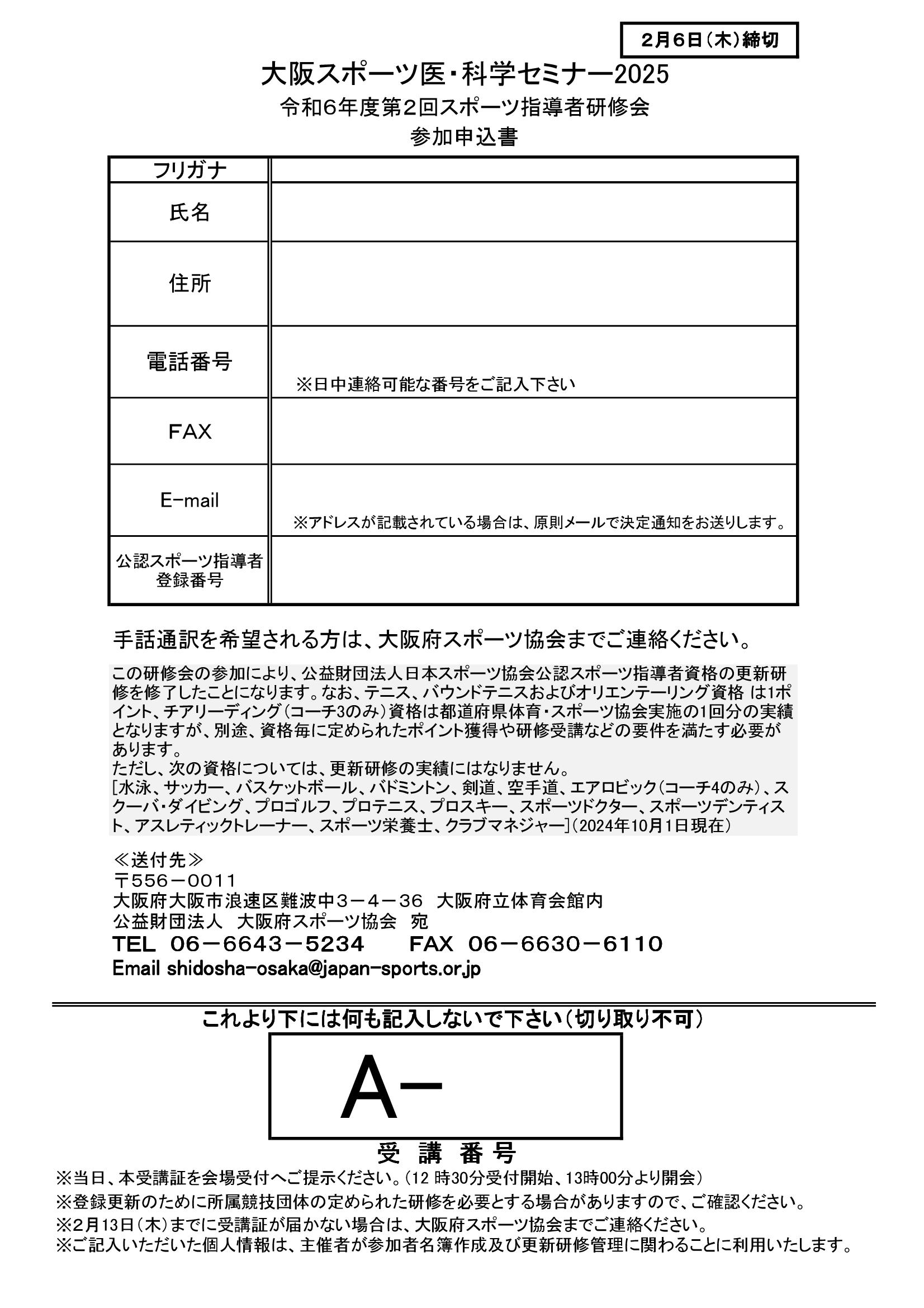 ※申込書は公益財団法人大阪府スポーツ協会のホームページよりダウンロードできます。