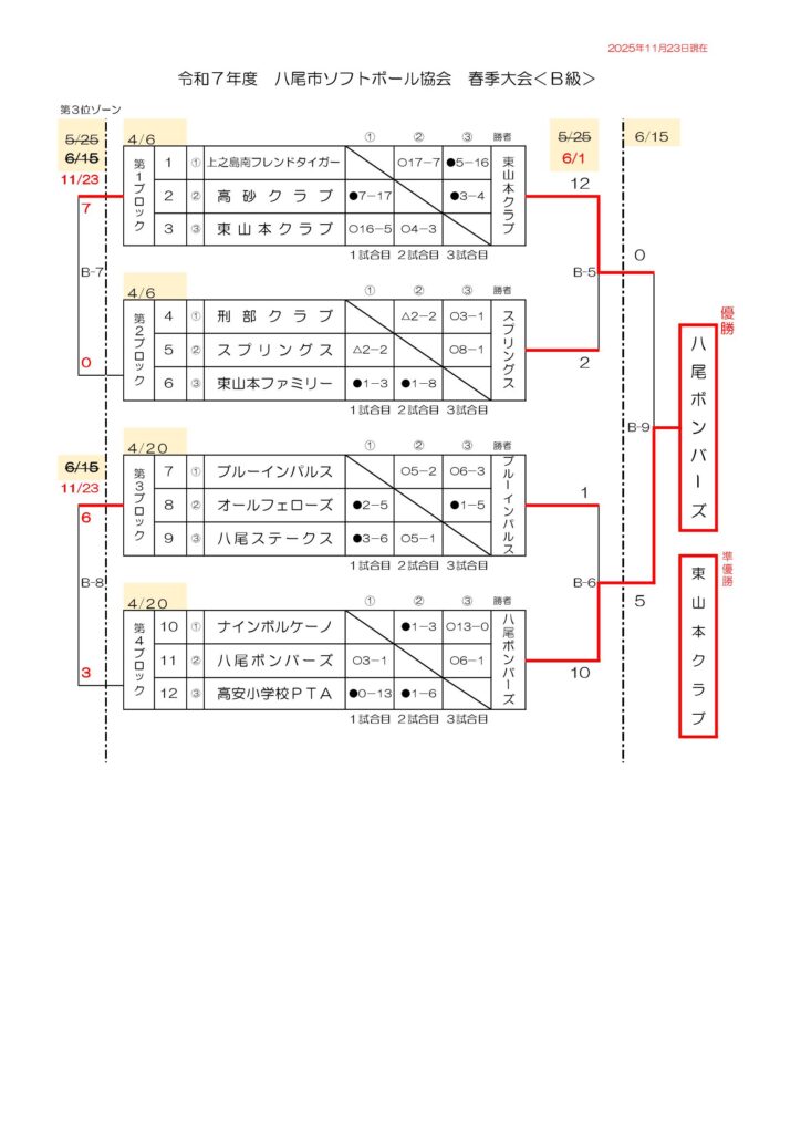 令和7年度 春季大会 B級 全日程が終了しました。〔11/23現在〕