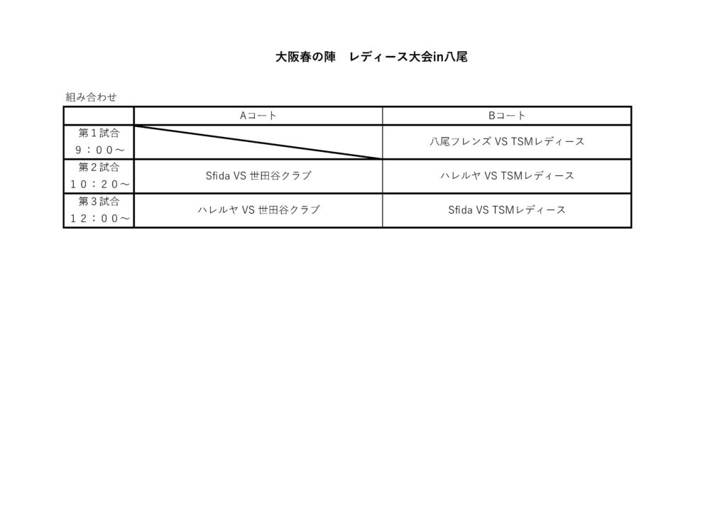 2026年2月19日 / 最終更新日時 : 2026年2月19日 yao-soft レディース 第3回大阪春の陣レディース大会 組み合わせが決まりました。 大阪春の陣レディース大会が福万寺グランドで開催されます。組み合わせは以下の通りです。